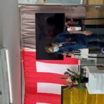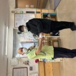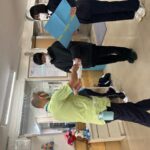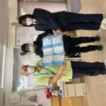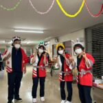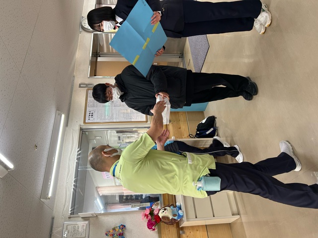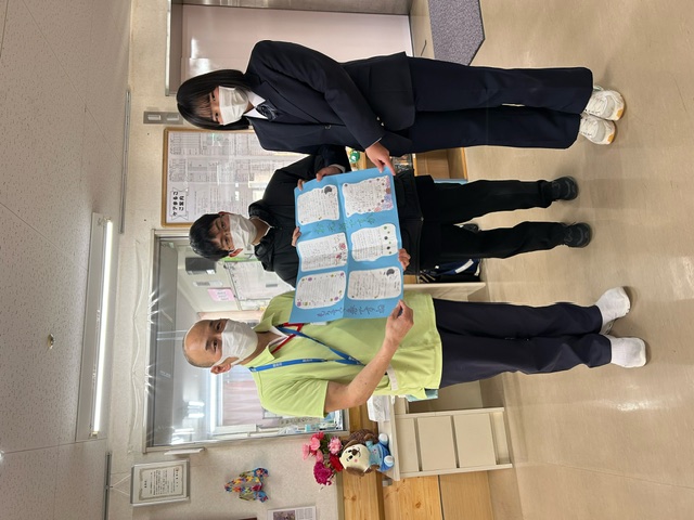 ケアまるこ利用者さんと職員で作った壁飾りを、総師長が代表で丸子中学校に届けました。