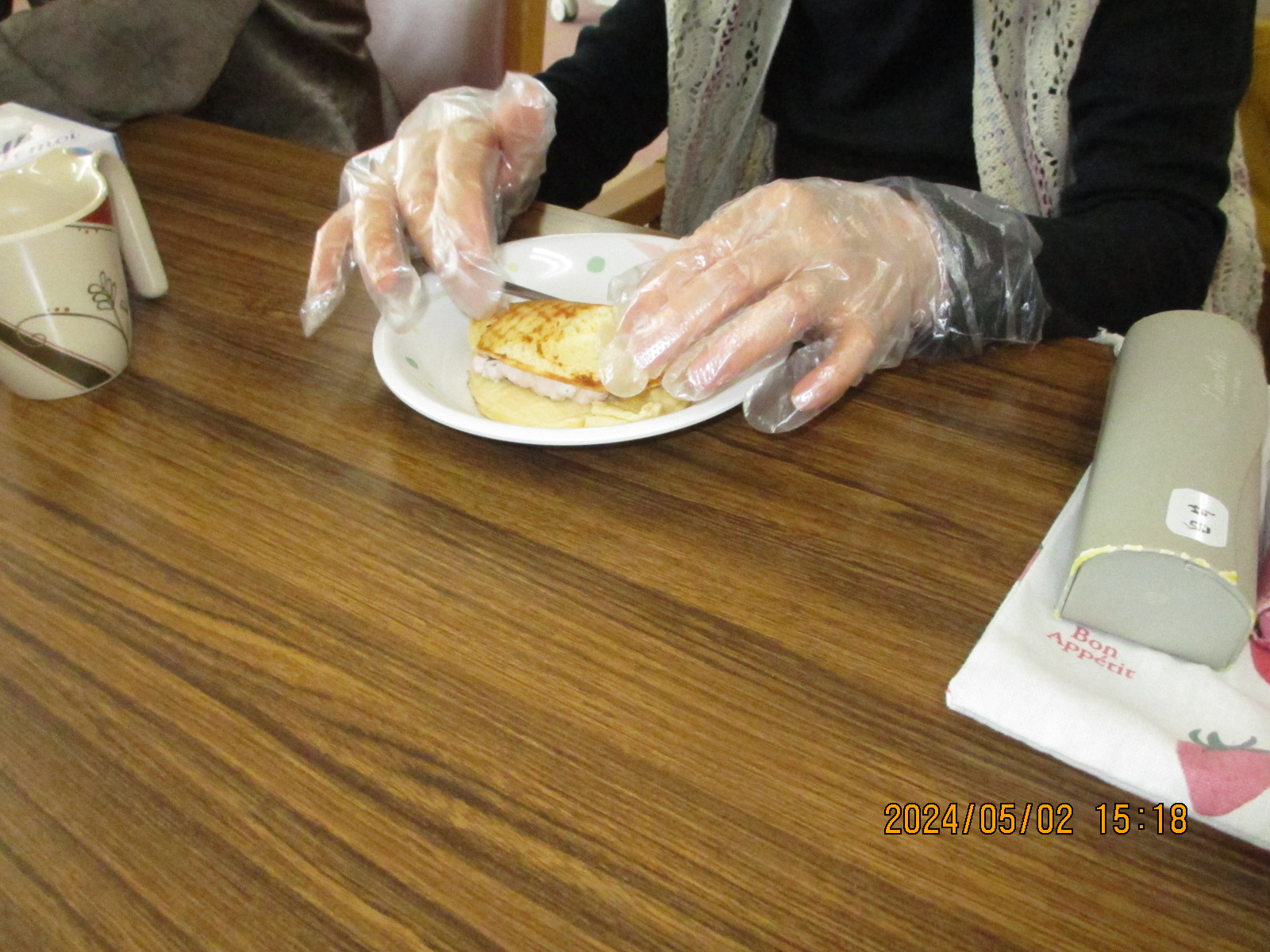 クレープの皮を焼くところから利用者さんが挑戦しました。とっても可愛い鯉のぼりクレープがたくさんできました🎏