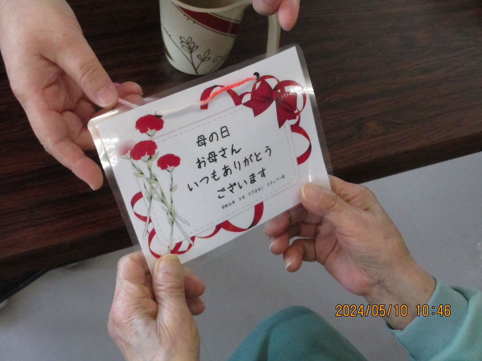 母の日会はメッセージカードをお渡しし、母の日の感謝を伝えました。