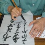 習字が得意な利用者さんが余暇活動で習字を始めました。作品は施設内に展示して利用者さんと職員で鑑賞しています。