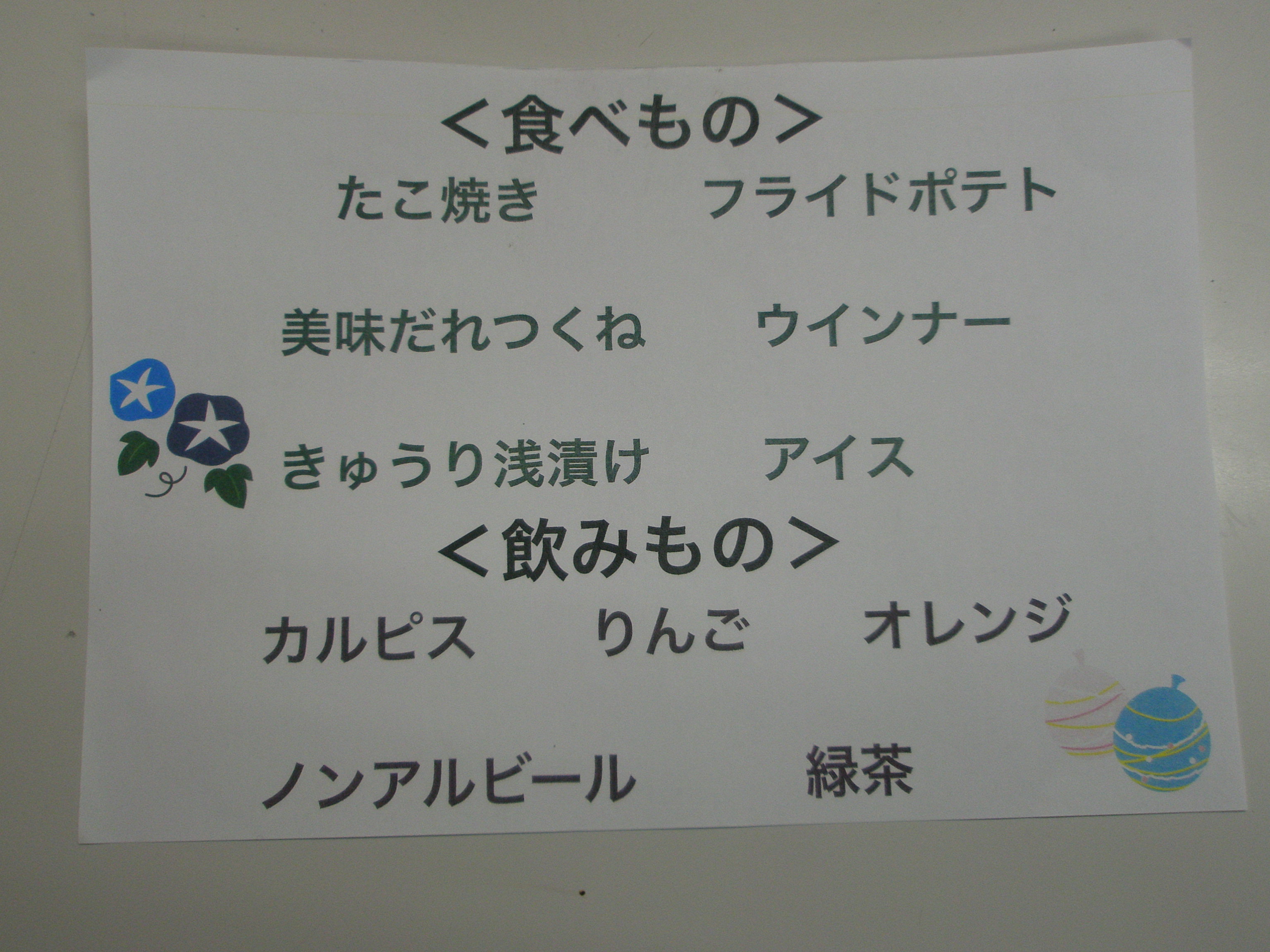 飲み物はジュースのほかにノンアルコールビールもありお祭りを楽しみました。