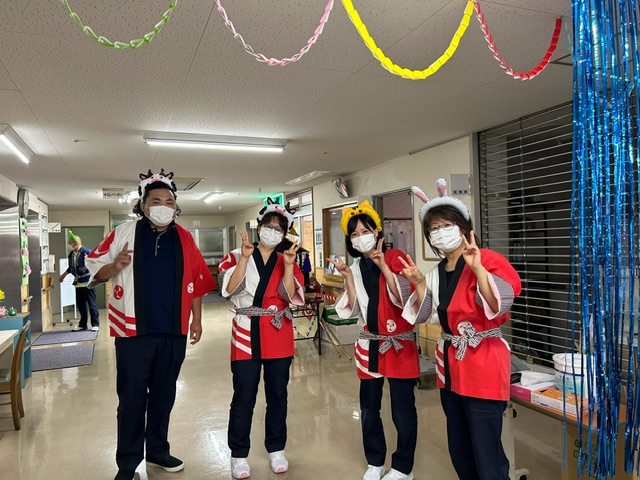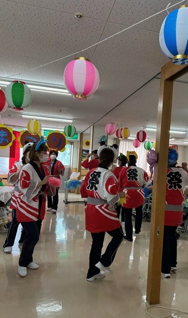 御神輿から始まり、利用者さんと職員でソーラン節を踊りました。