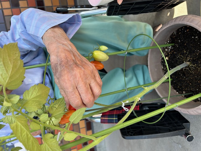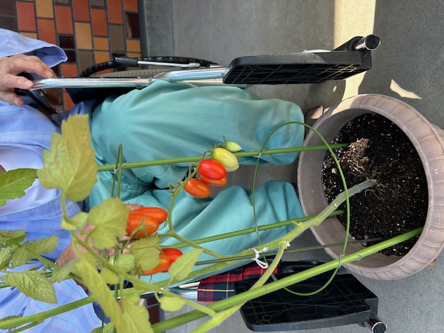毎日利用者さんが順番に水やりをし、総師長と作業療法士が肥料や虫取をして大事に育て沢山の野菜が実りました。