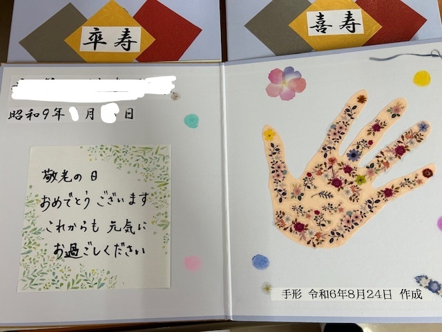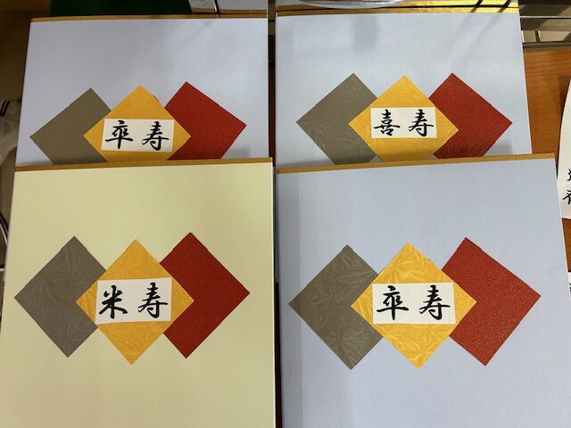 卒寿・米寿・喜寿の皆さんにはケアまつこよりお祝いの色紙をプレゼントさせていただきました。
