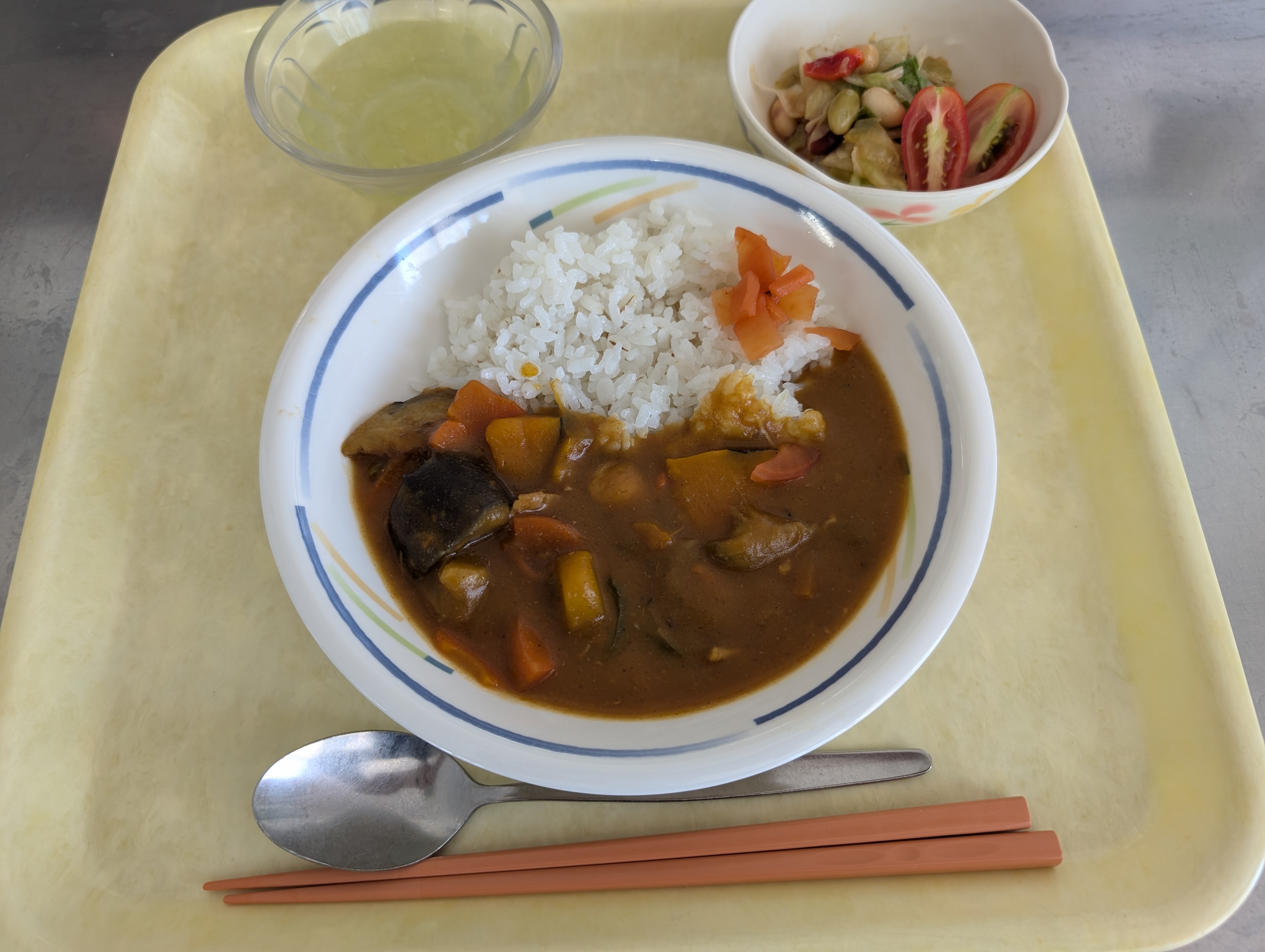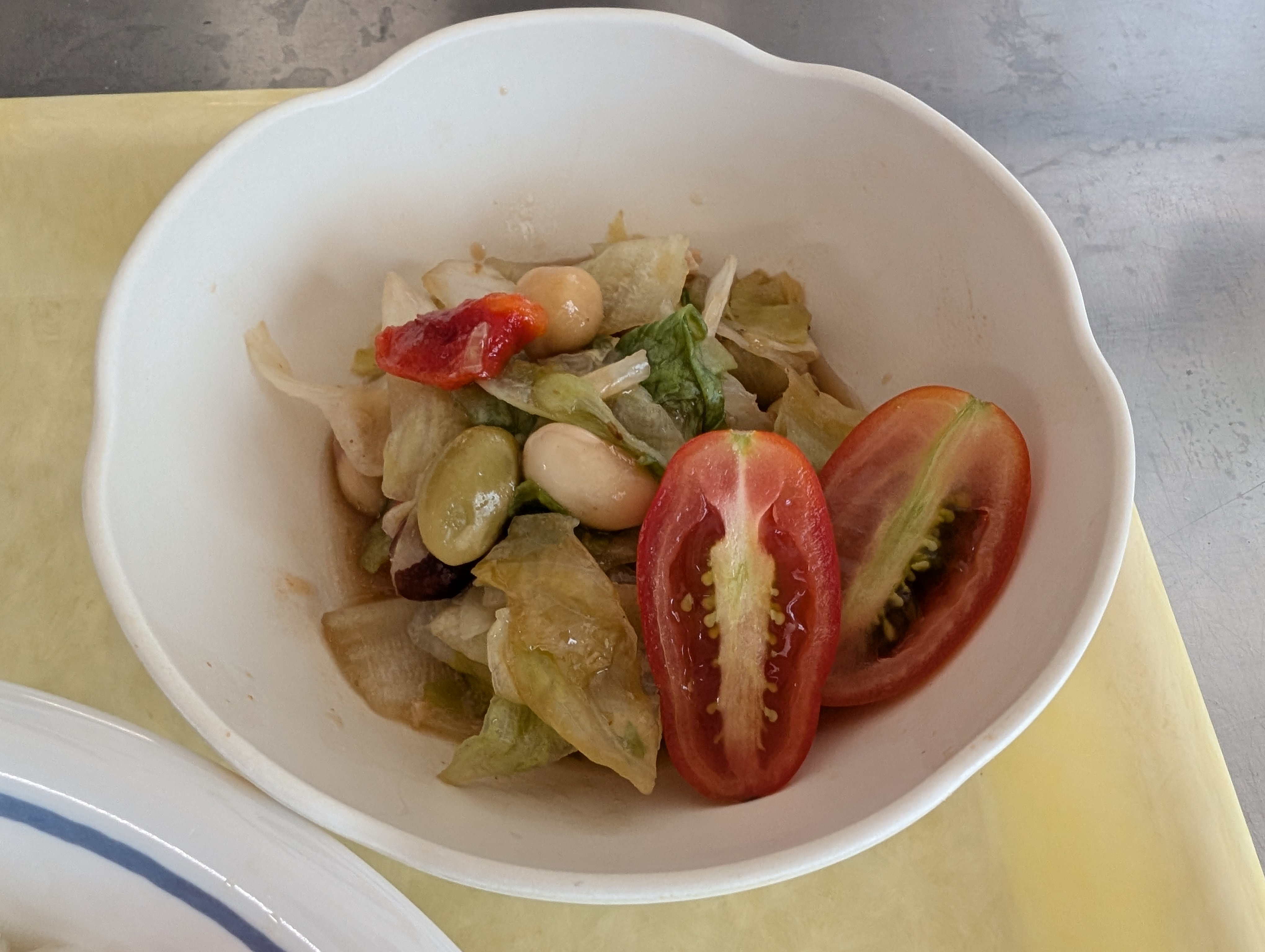 採れたての野菜は栄養士がお昼のサラダにトッピングして提供いたしました。「美味しい」と、喜ばれていました。