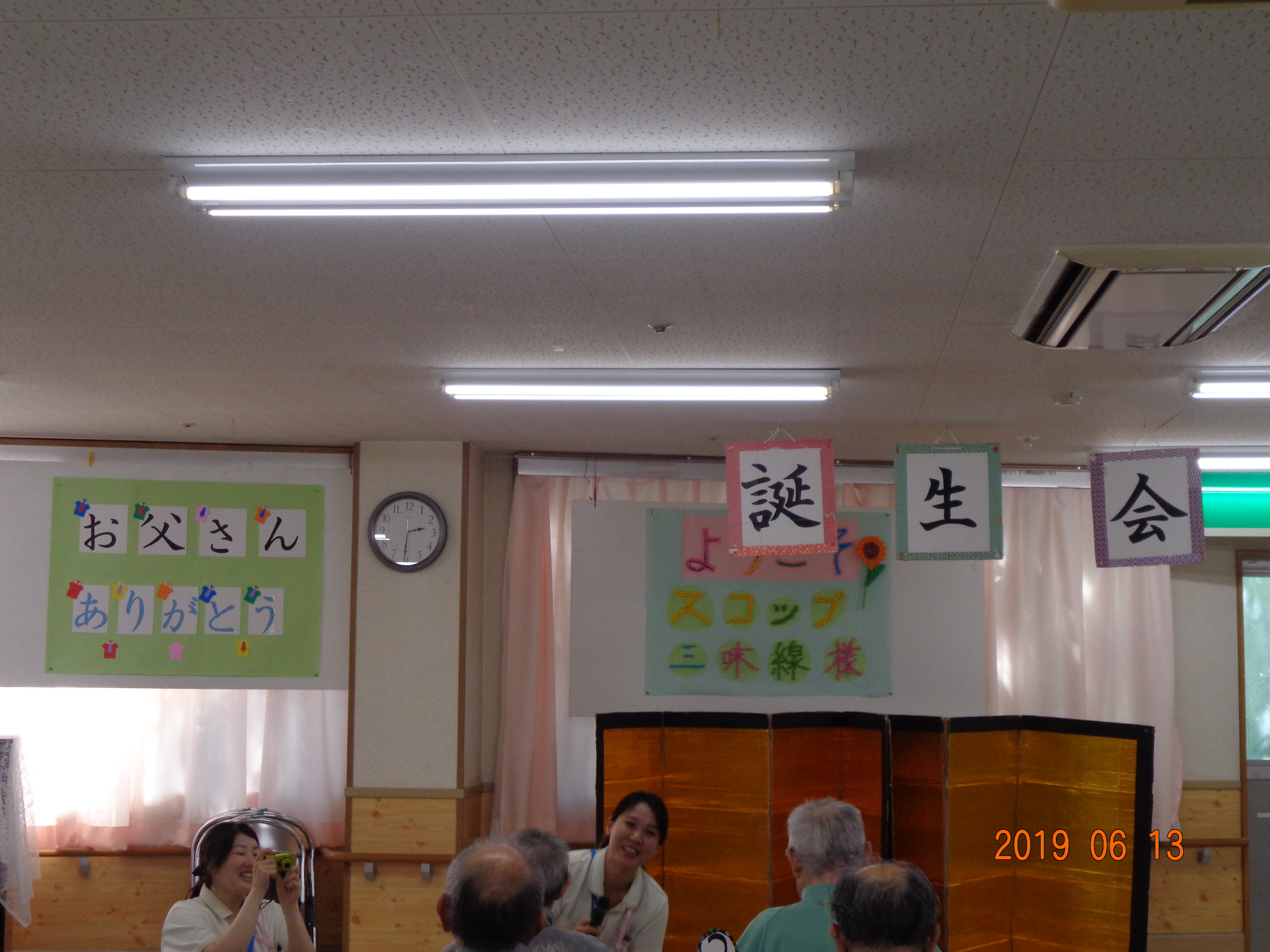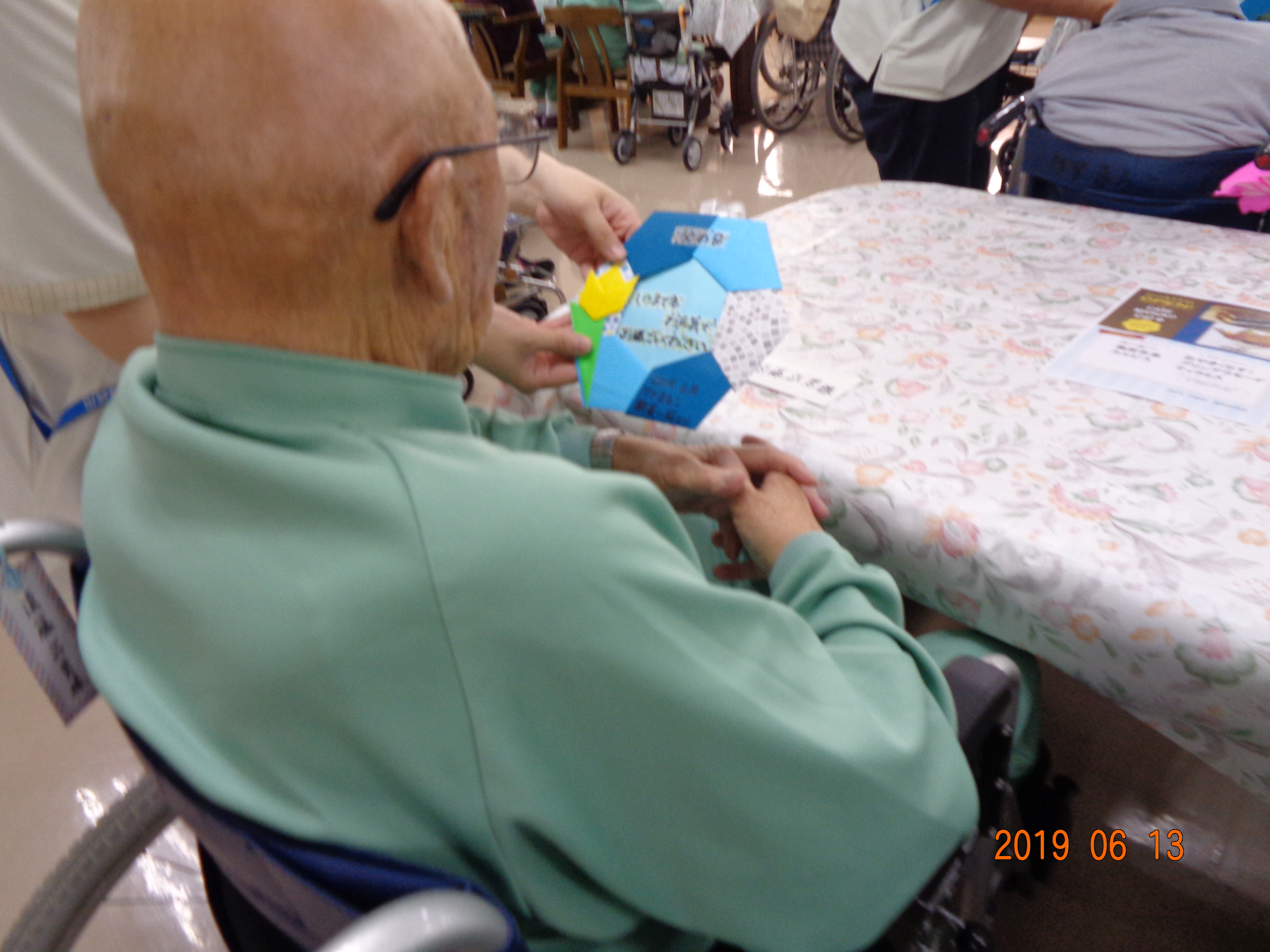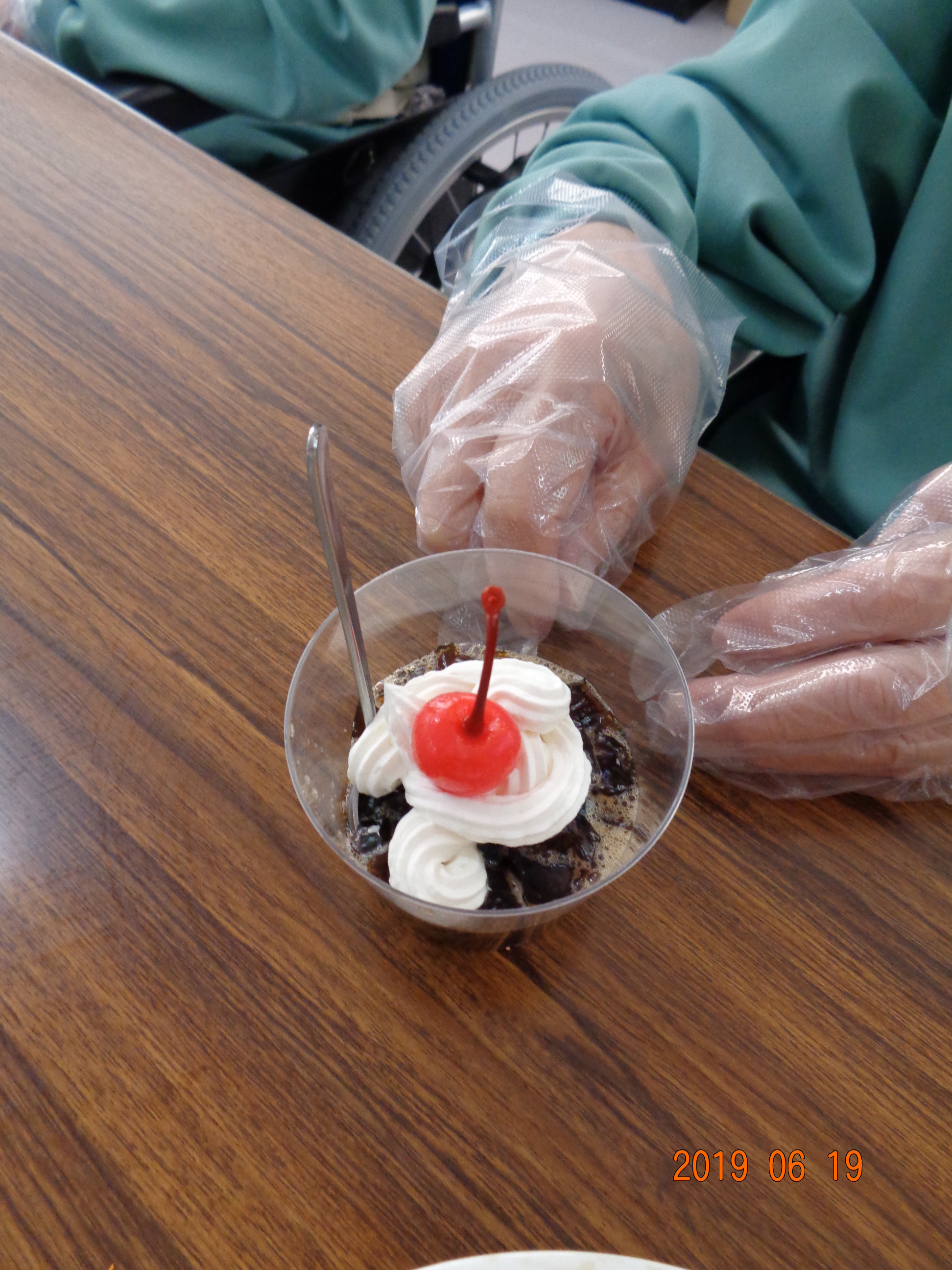 TOP フォトギャラリー フォトギャラリー -バックナンバー- フォトギャラリー 2019年6月 ★2019年6月19日 おやつ作り 今回はコーヒーゼリーを作りました 材料はコーヒーゼリー・さくらんぼ・生クリーム ★2019年6月13日 入所 父の日・喫茶・誕生日会 喫茶メニュー ティラミス・プリンアラモード・おやき お父さんへのプレゼント バックナンバーへ戻る