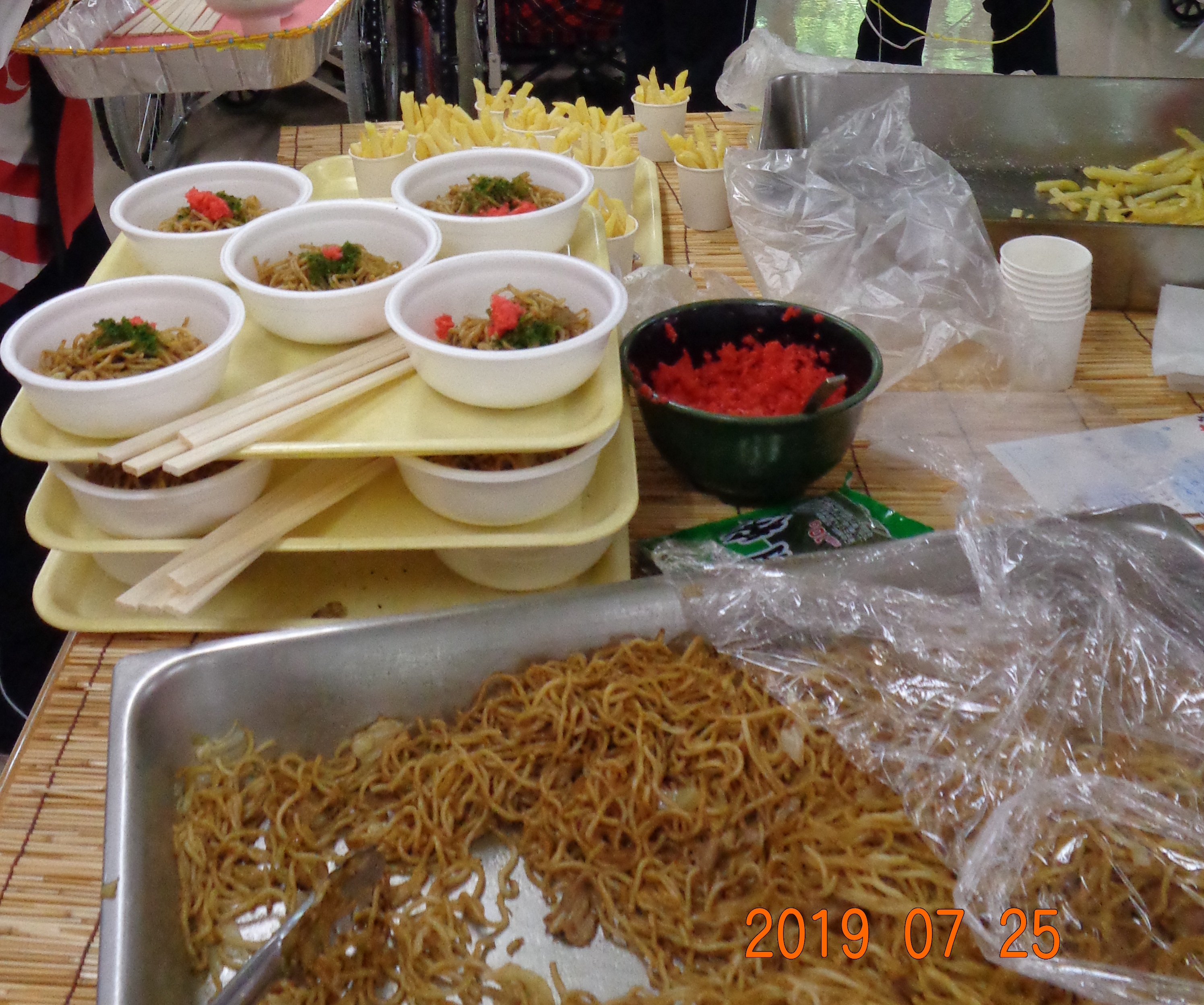 フライドポテトが出ました。最後は利用者さんボランティアさん職員で炭坑節を踊り、夏の行事を楽しみました。