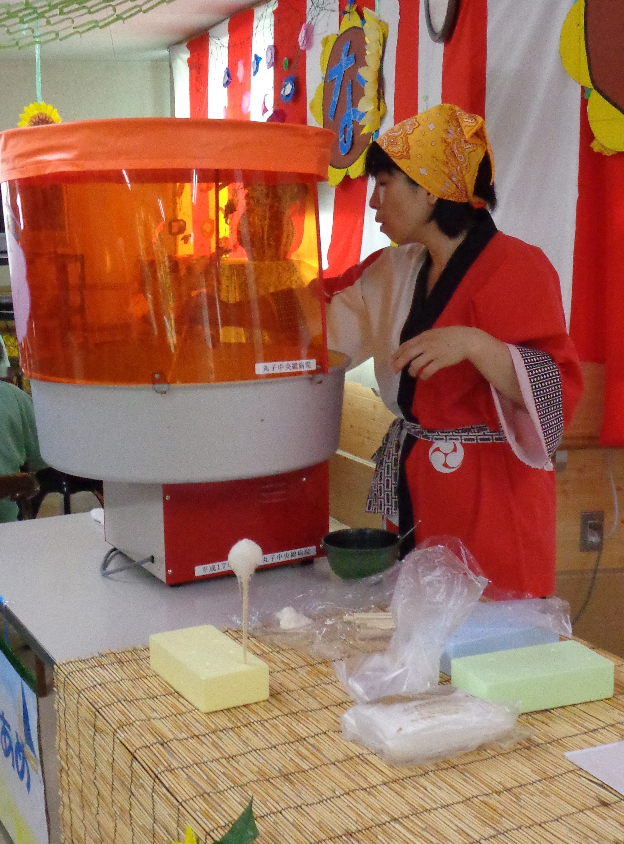 ケアまるこ女神輿から始まり、高校生ボランティアの発表、屋台はやきそば・わたあめ・かき氷・焼きウインナー・