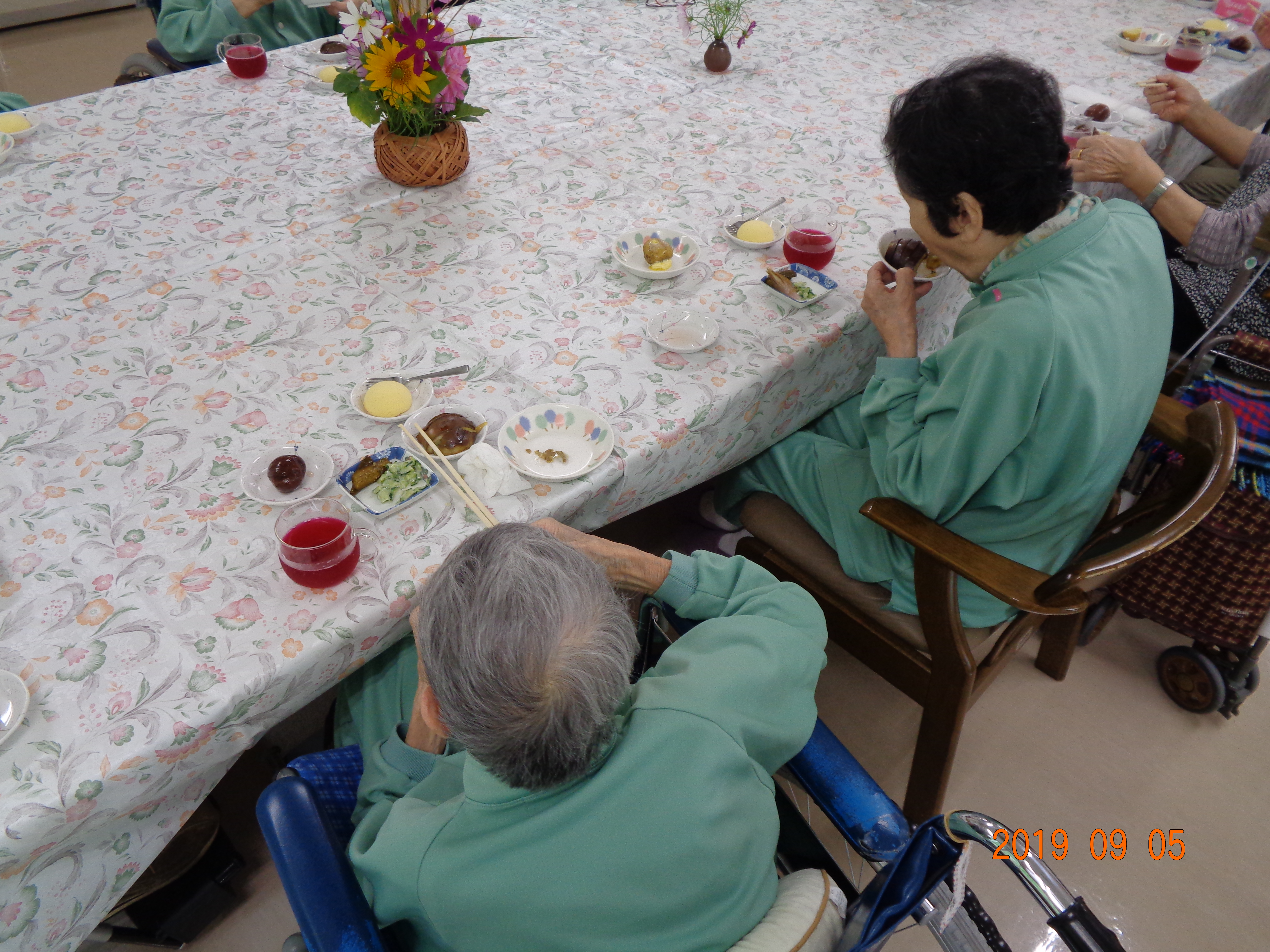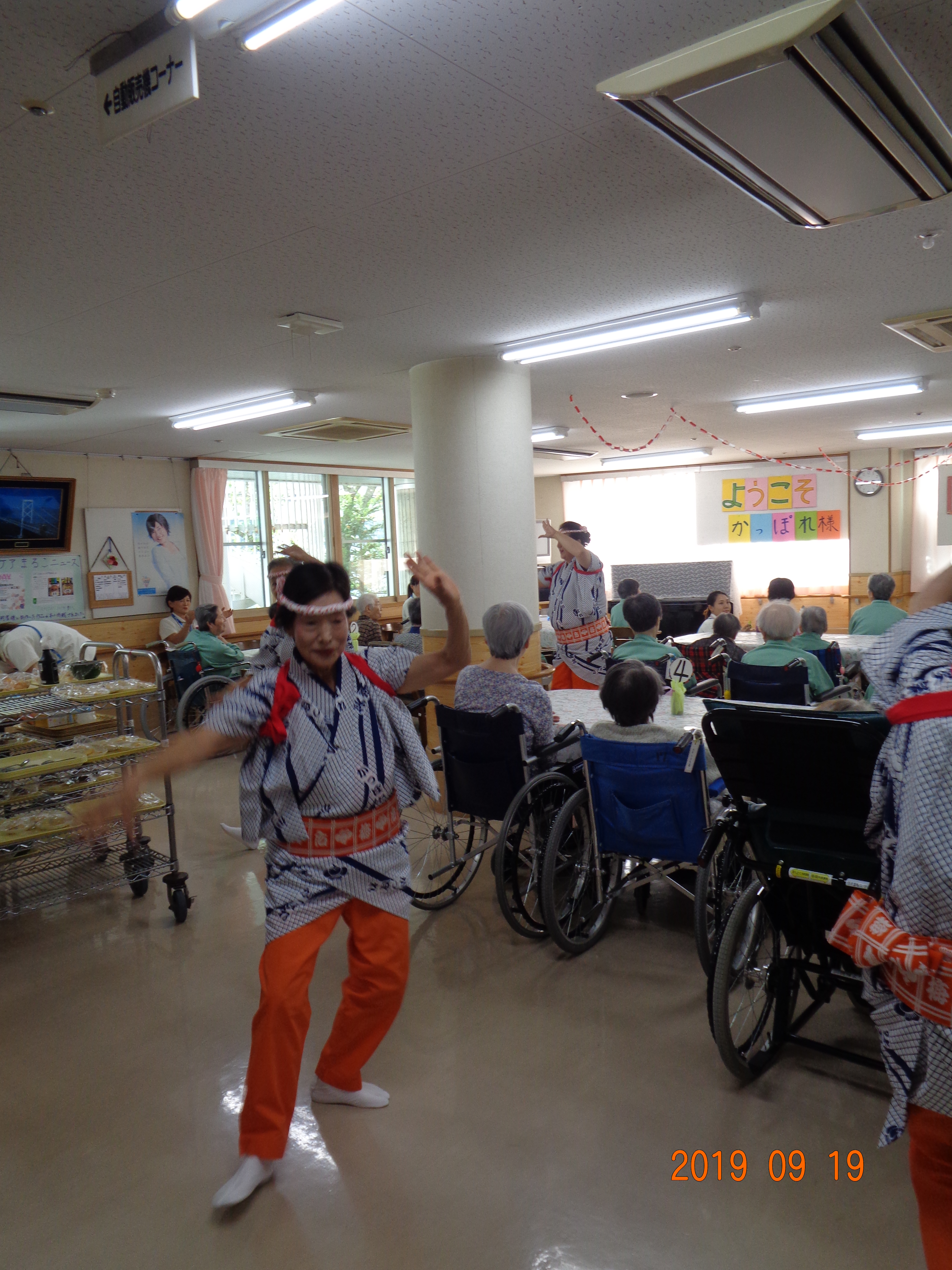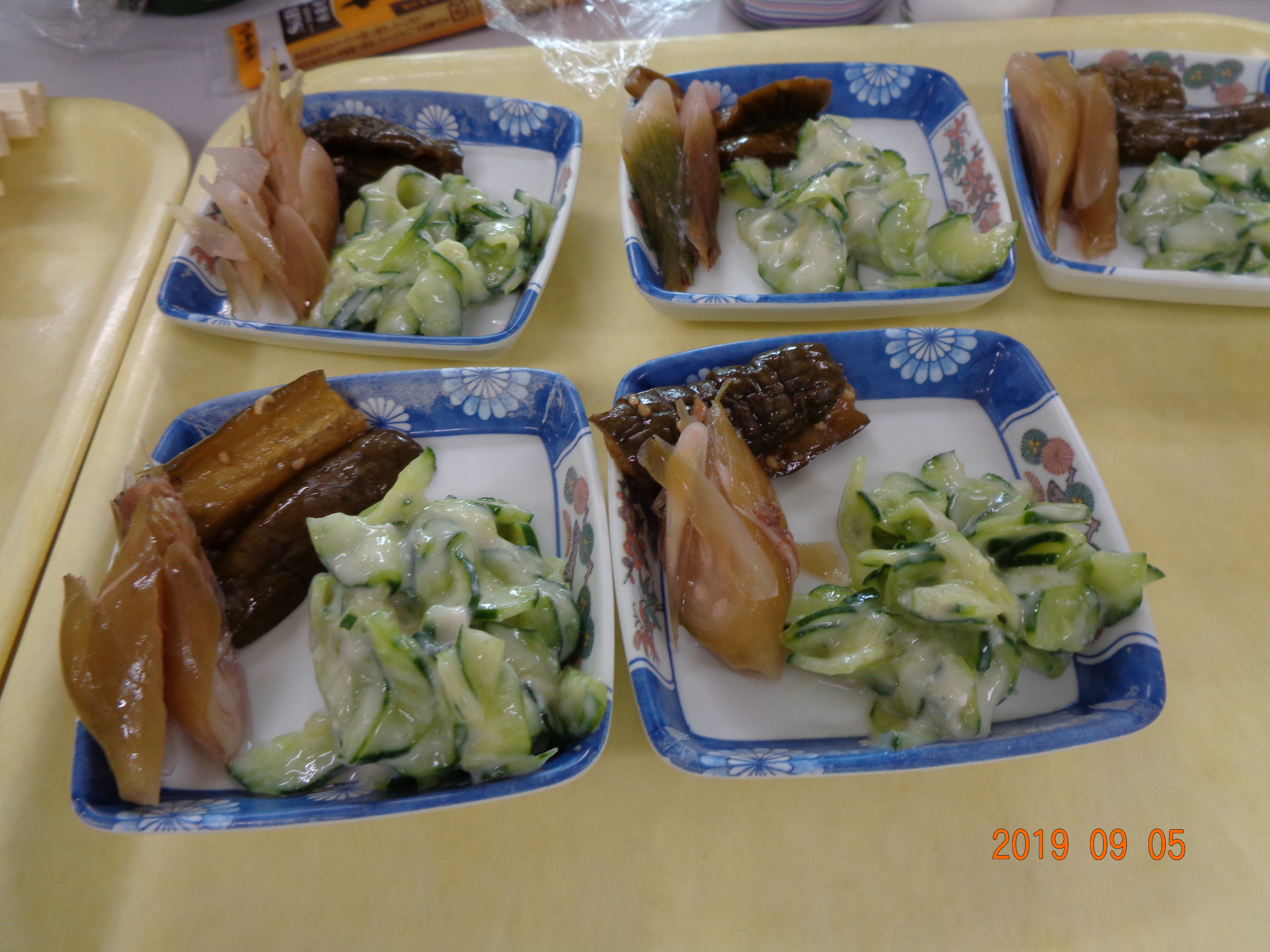 TOP フォトギャラリー フォトギャラリー -バックナンバー- フォトギャラリー 2019年9月 ★2019年9月19日 喫茶・誕生日会にボランディアの「かっぽれ」さんが来てくれました。 ★2019年9月10日 ✿敬老会のお祝い膳✿ ★2019年9月5日 季節を楽しむ会 夏の野菜を楽しみました。皆さん美味しいと喜んでいただけました。 蒸したじゃがいもとナス きゅうりの粕もみ きゅうりやみょうがの漬物 季節の花(職員作) バックナンバーへ戻る
