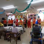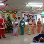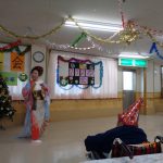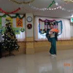 入所ではサンタクロースも登場しクリスマスプレゼントは利用者さんに好評でした。 ボランティアの貴山観桜み会さんの日本舞踊はとても素晴らしかったです。 デイケアは職員の余興でラインダンスをしたり、デュエットで二輪草を歌いました。利用者さんも余興体操をしてくださり楽しい時間を過ごせました。