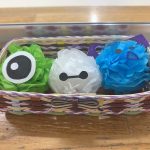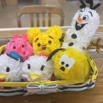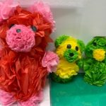 レクレーション制作でお花紙を使って沢山の作品ができまた。利用さんが開いてくれた、お花紙を作業療法士が目や鼻を付けてたくさんのキャラクターが出来上がりました。