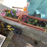 今年のプランター作業はお花を育てています。利用者さんが毎日順番に水やりをしたり、手入れをして綺麗な花が咲いています。