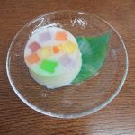 管理栄養士の手作りおやつが出ました。以前試作した紫陽花ゼリーをさらに紫陽花に見えるように作ってくれました。