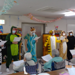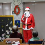利用者さんにサンタクロースからプレゼントが配られました。クリスマスケーキに職員の余興でクリスマスを楽しました。