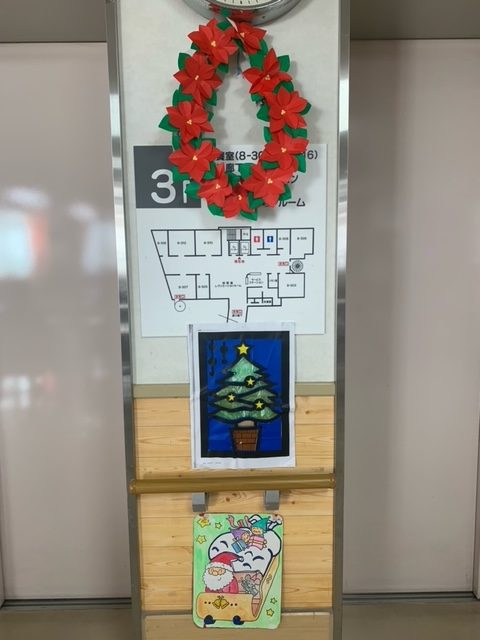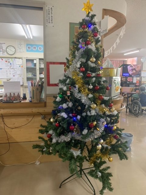 玄関飾りも毎月介護士が季節の飾りを考えてくれていてとても、華やかです。施設内にはたくさんのクリスマスの飾りがあり利用者さんも職員もクリスマスの季節を楽しんでいます。