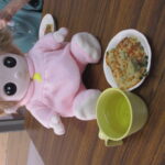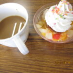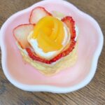 今月の手作りおやつはプリンアラモードでした。それぞれフルーツとクリームをトッピングしました?