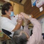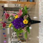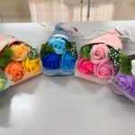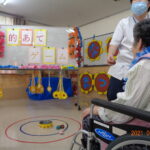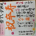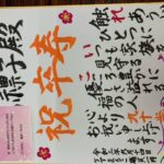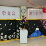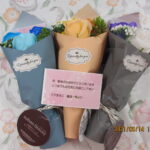 長寿祝いの節目の利用者さんには職員手書きの色紙を、利用者全員にケアまるこよりソープフラワーをプレゼントしました。