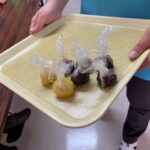 今月の手作りおやつ作りは「ツリーモンブラン」を作りました。