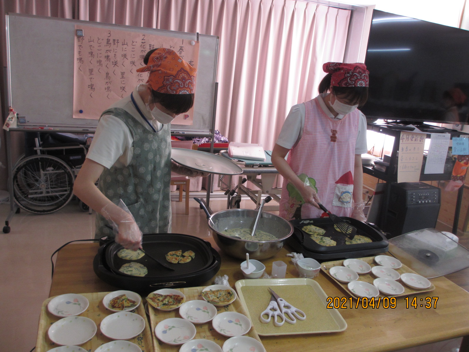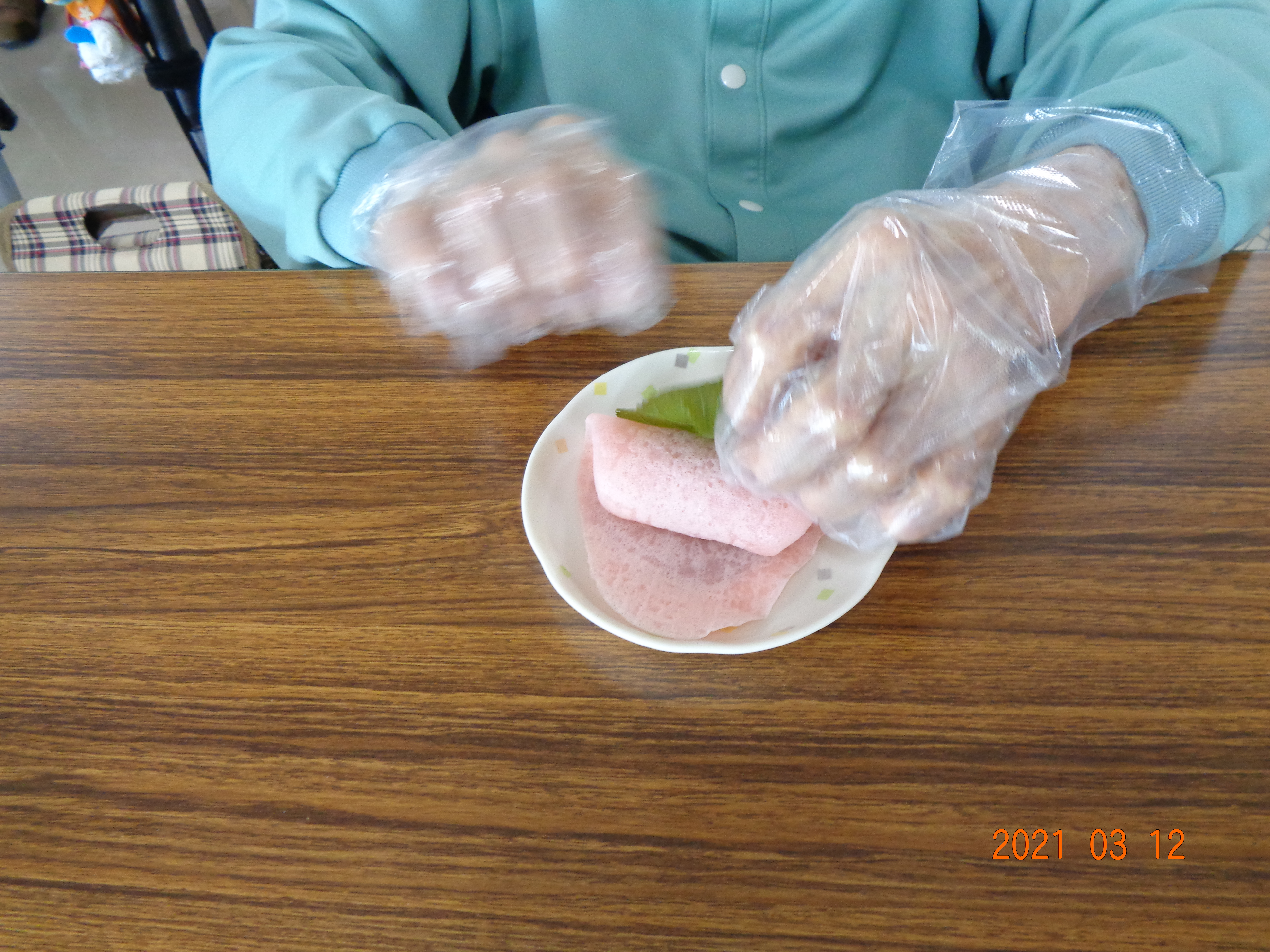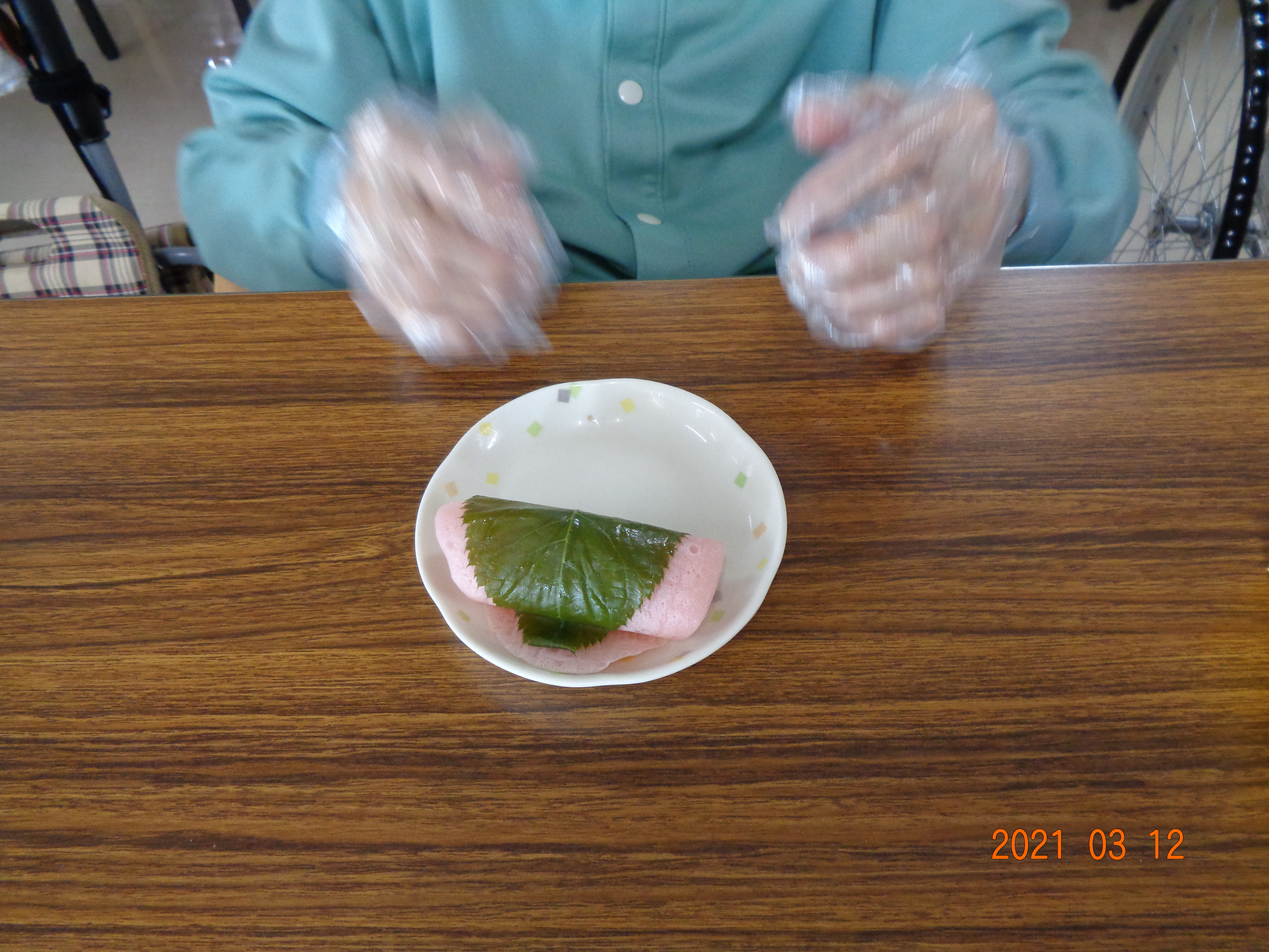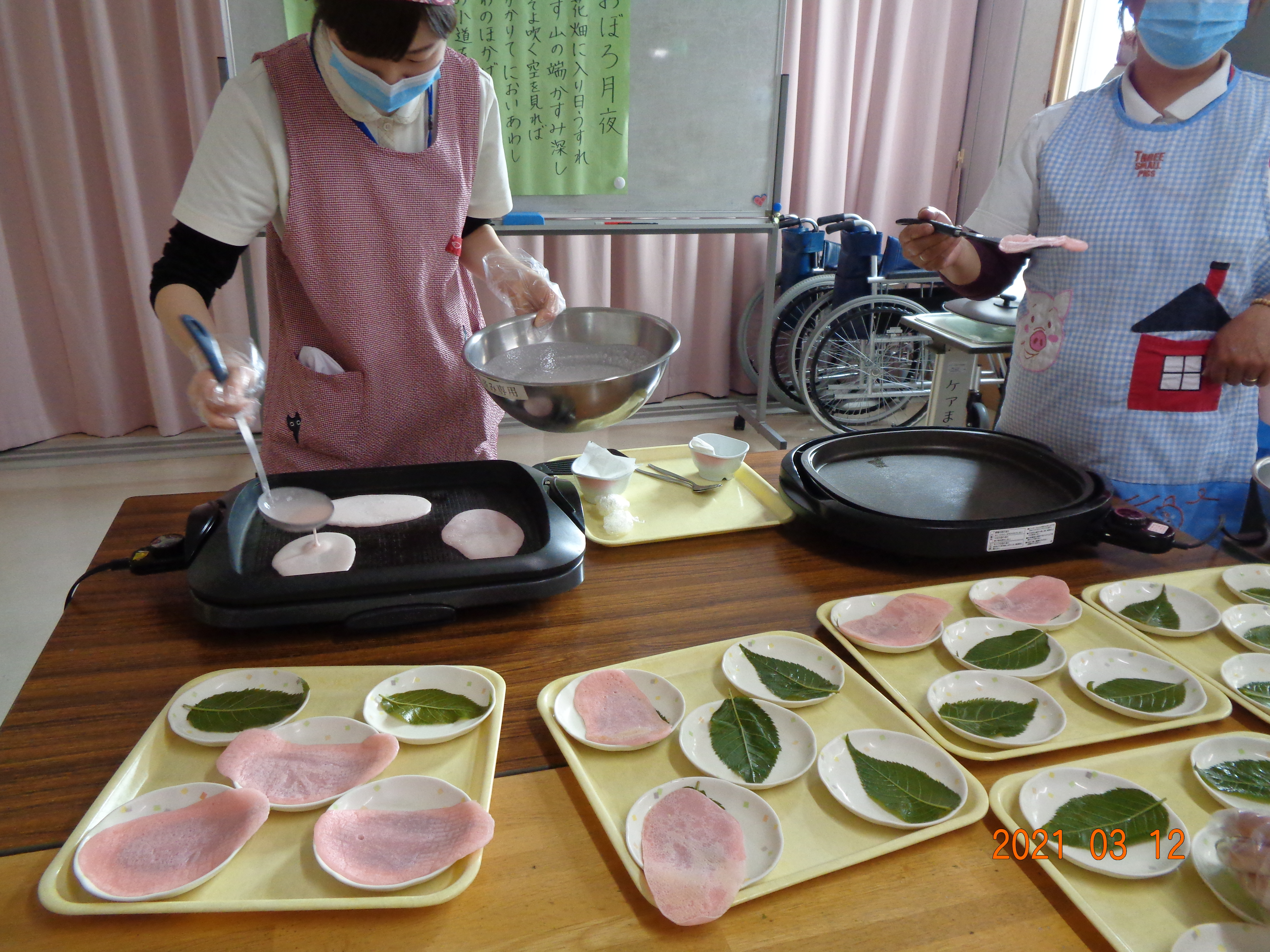 毎年恒例の桜餅作りをしました。桜の葉のにおいで春を感じました。