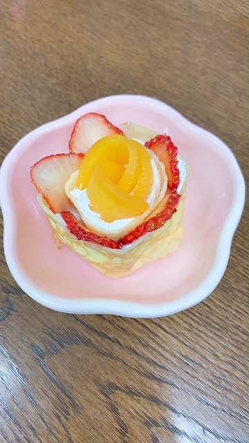 お花クレープ作りをしました。お花のように巻くのに苦戦しましたが楽しいおやつ作りになりました。