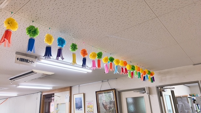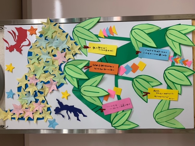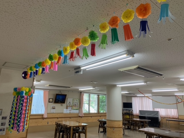 今年も七夕飾りを制作しました。たくさんの飾りができました。