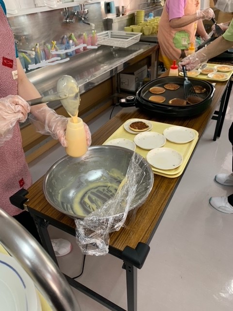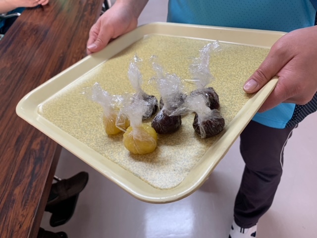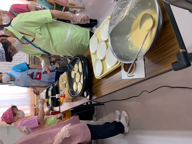 今月の手作りおやつは「どら焼き」でした。栗あんとこしあんか各自好きなあんを選んで作りました。