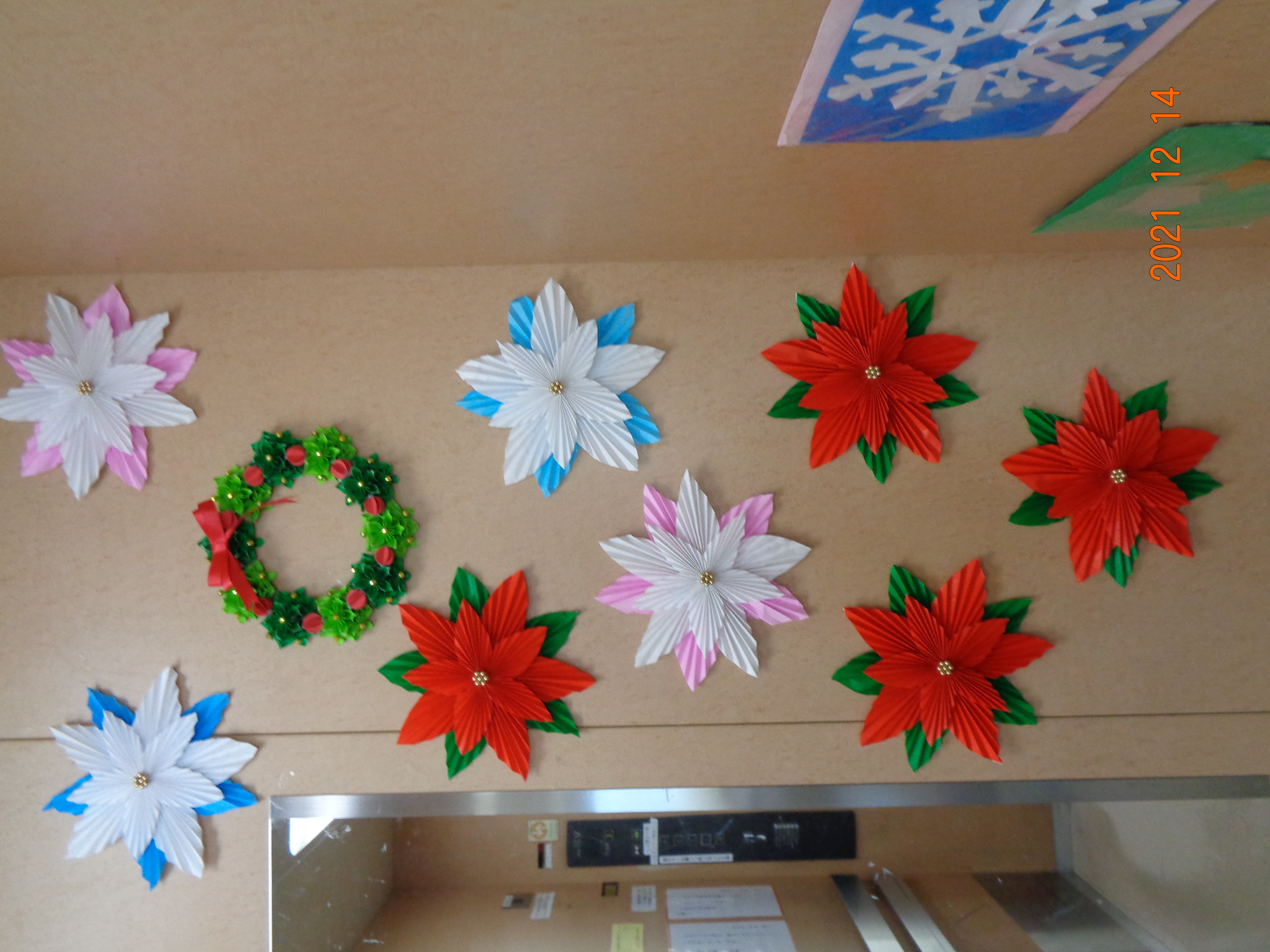 作業療法士が今月も綺麗に飾りを作ってくれました。