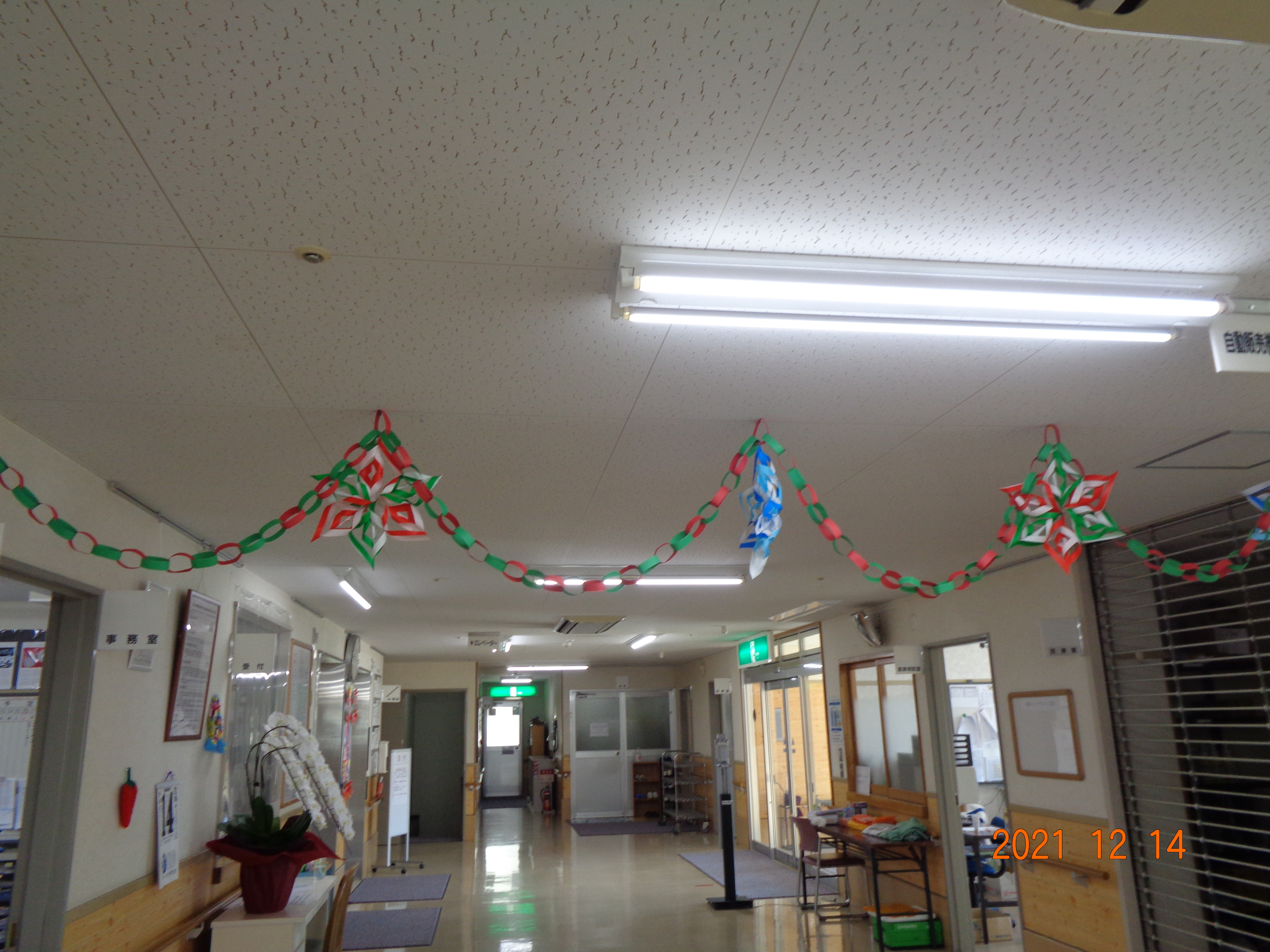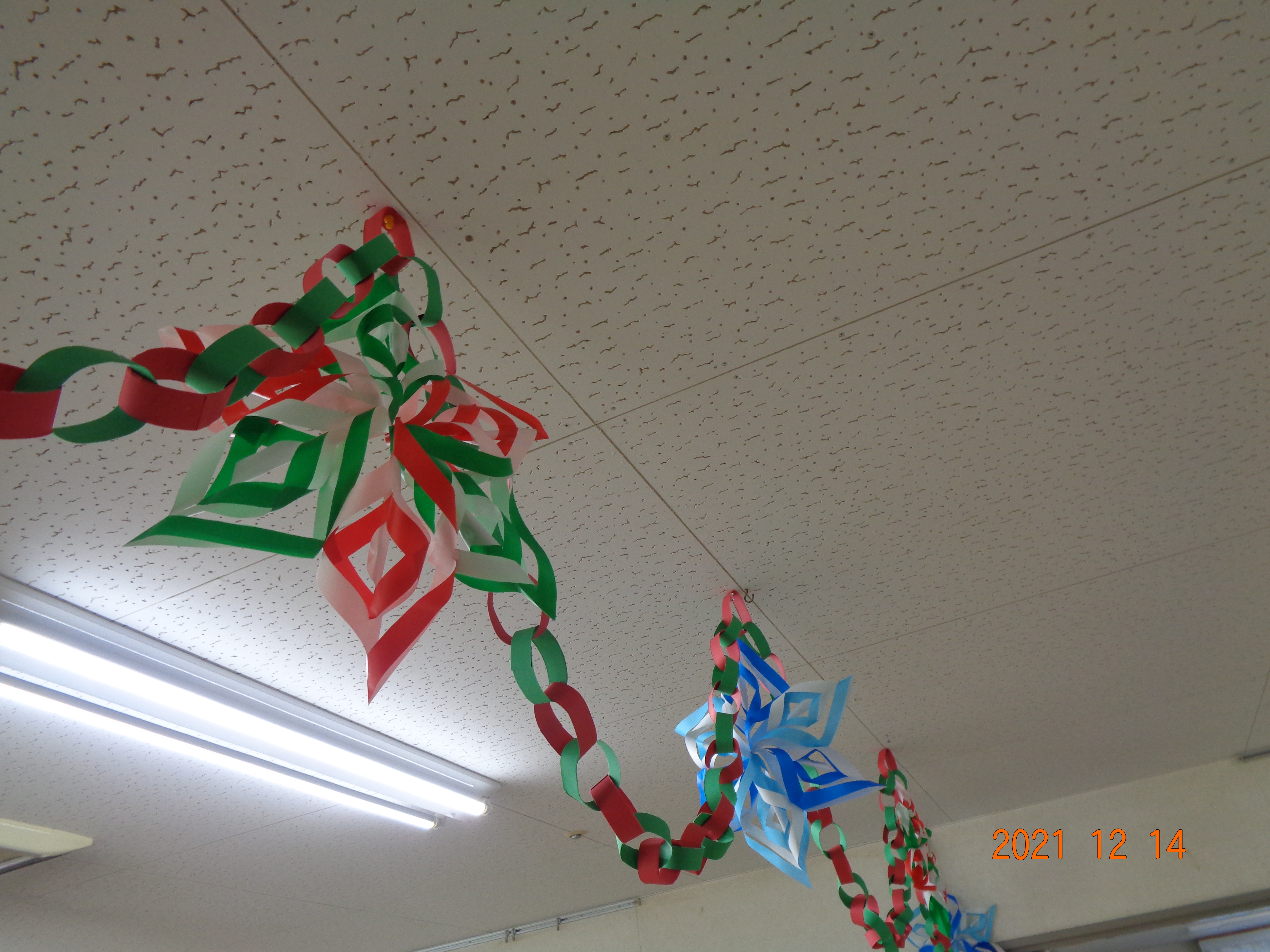 利用者さんとスタッフでたくさんのクリスマス飾りを作りました。