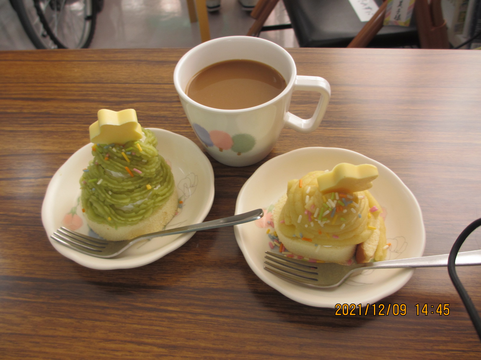 今月の手作りおやつ作りは「ツリーモンブラン」を作りました。