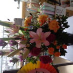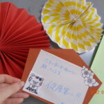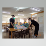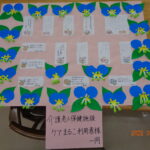 ケアまるこの利用者さんからは文化祭の名前、露草にちなんで折り紙で露草の花を作り寄せ書きをして、中学校にプレゼントさせていただきました。コロナ禍で中学生の皆さんに直接お渡しすることはできませんでしたが、中学校の先生にお渡しすることができました。