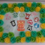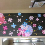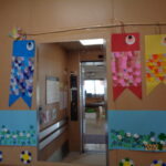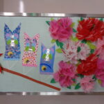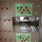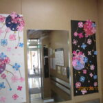 エレベーターの中や入口に作品を飾ってあります。施設内にいても季節を感じられます。