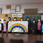 その感謝を込めて、利用者さんと職員で卒業祝いの作品を作りました。コロナ禍のため代表職員で贈呈させていただきました。