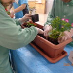 プランターにお花を植えました。利用さんは久しぶりの土いじりは「楽しい」と作業されていました。