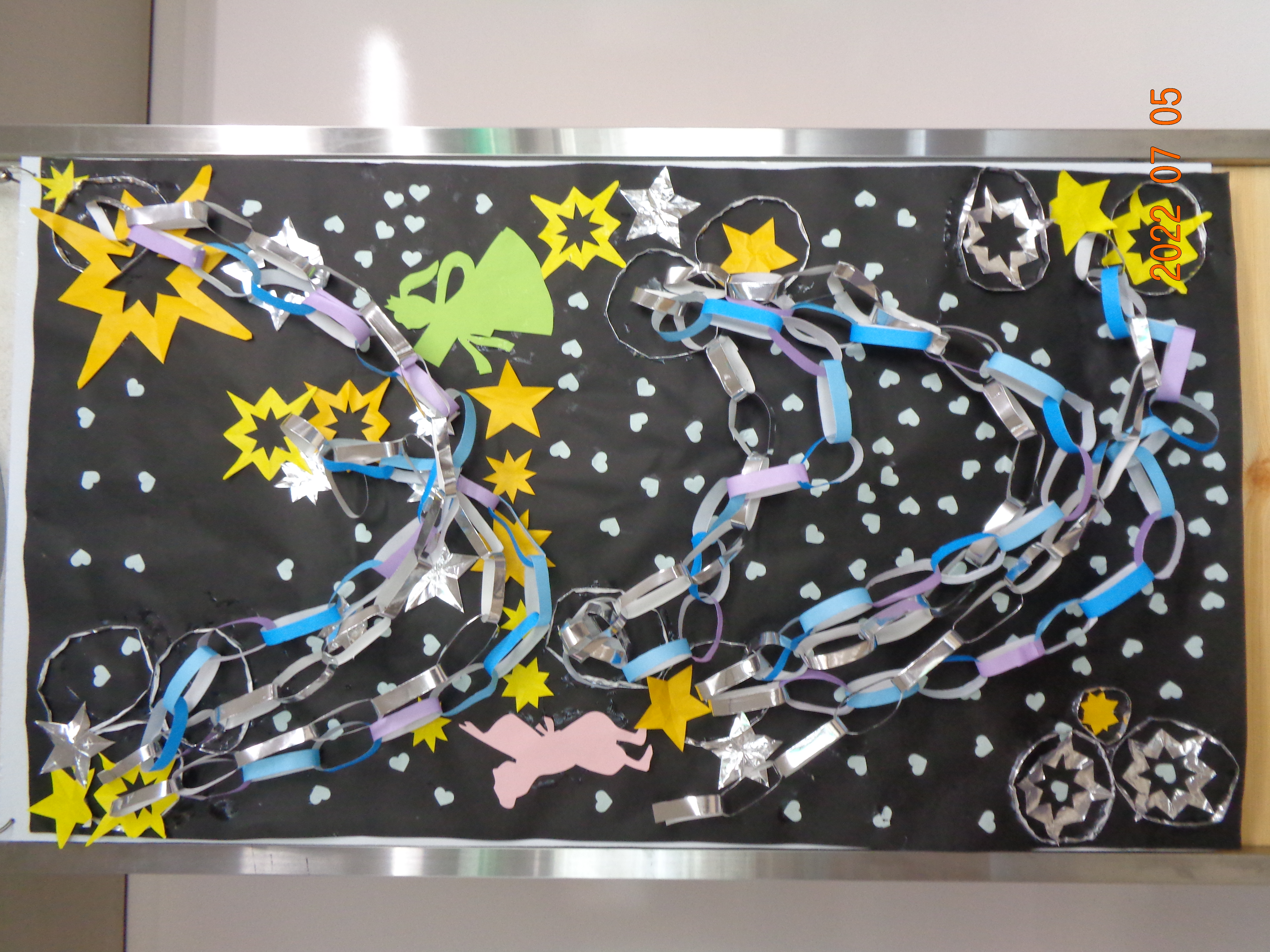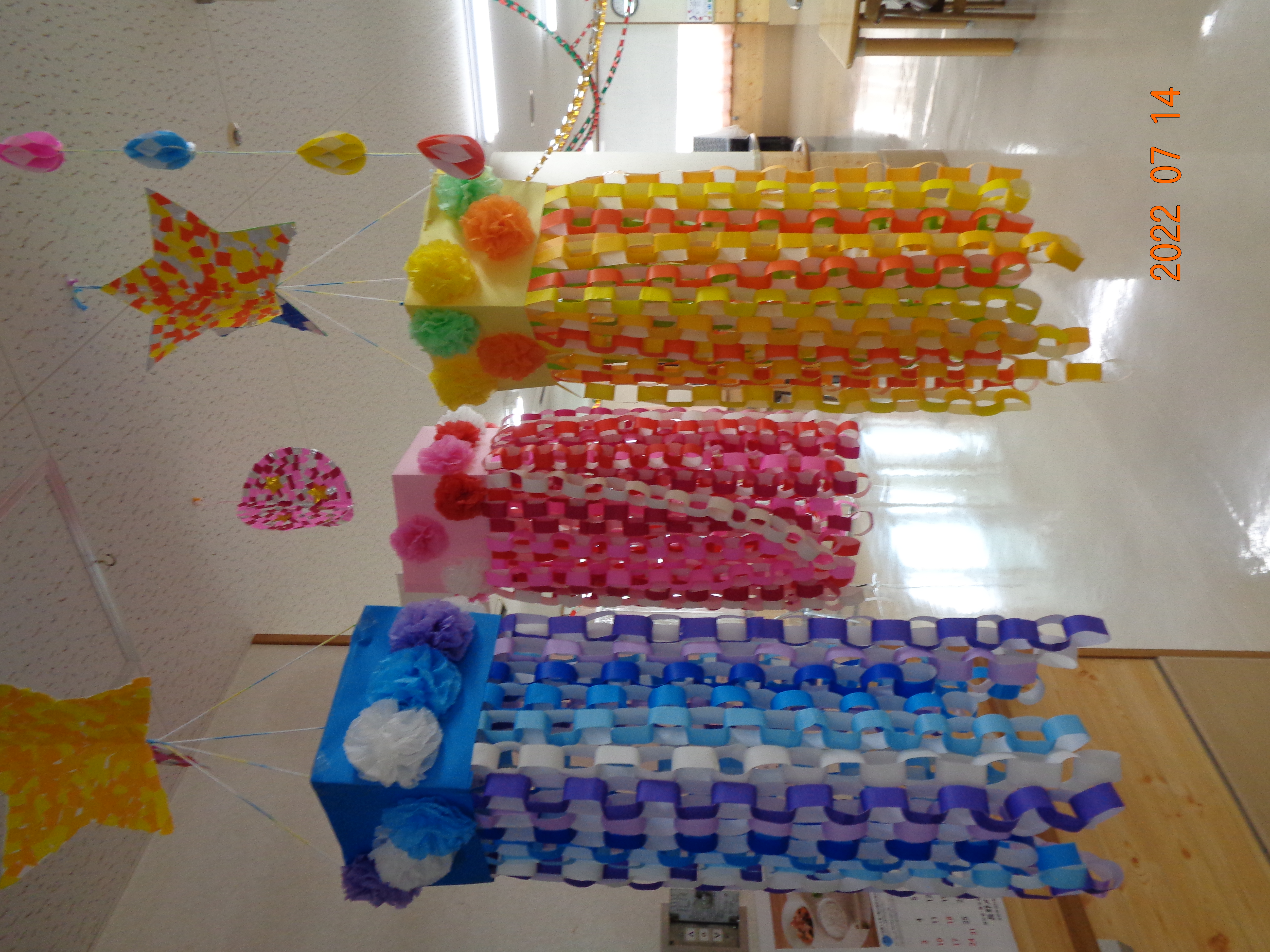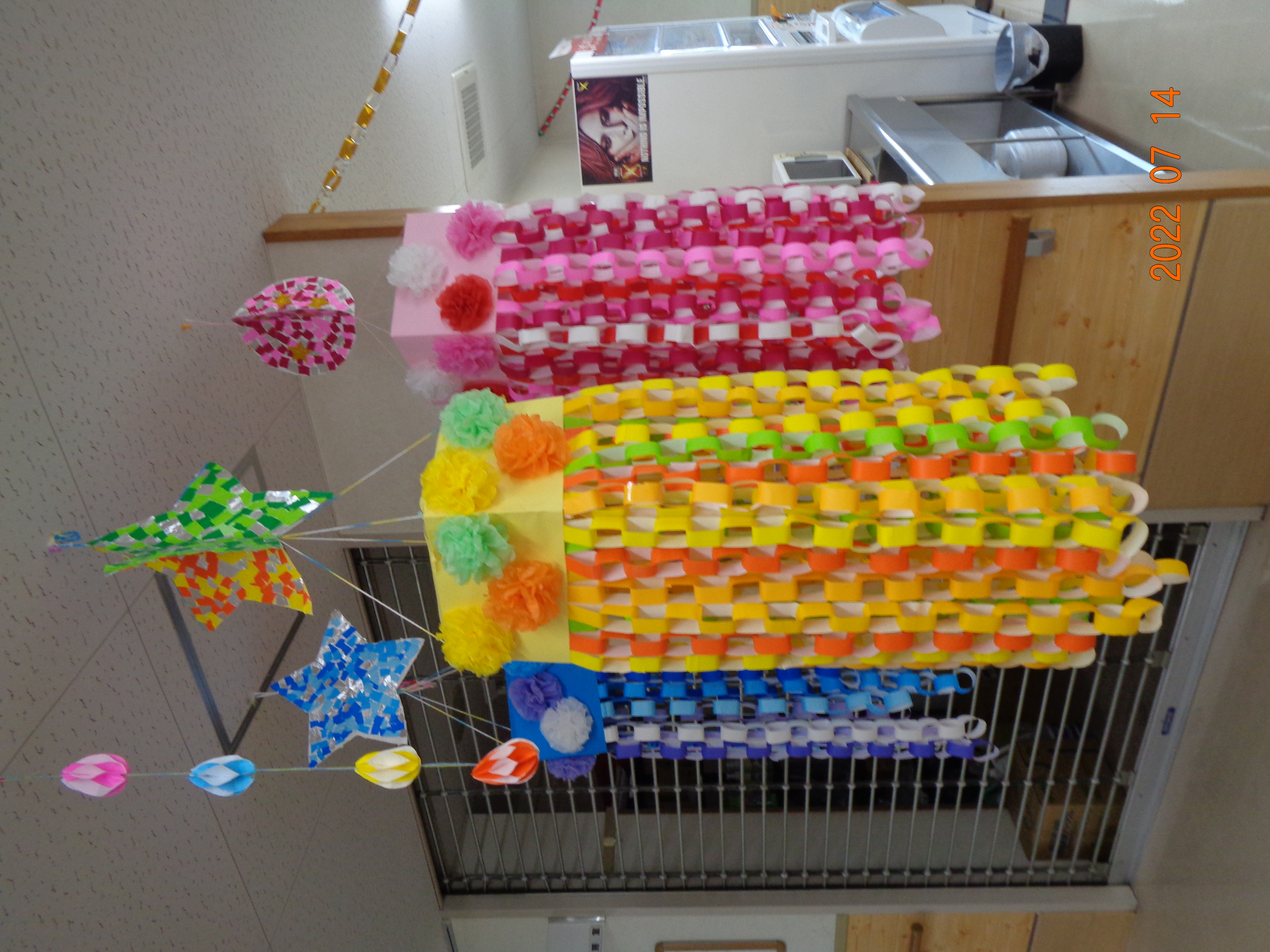 今年も利用者さんと職員で七夕飾りを作りました。華やかです☆彡