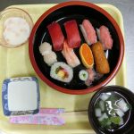 デイケアと入所で寿司ランチをしました。粥玉寿司も出て好評でした。