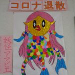 4月のレクレーション制作で『妖怪アマビエ』を貼り絵しました。新型コロナウイルスの早期終息願い利用者さんと職員で制作しました。※妖怪アマビエを見ると疫病が鎮まると言い伝えられています。