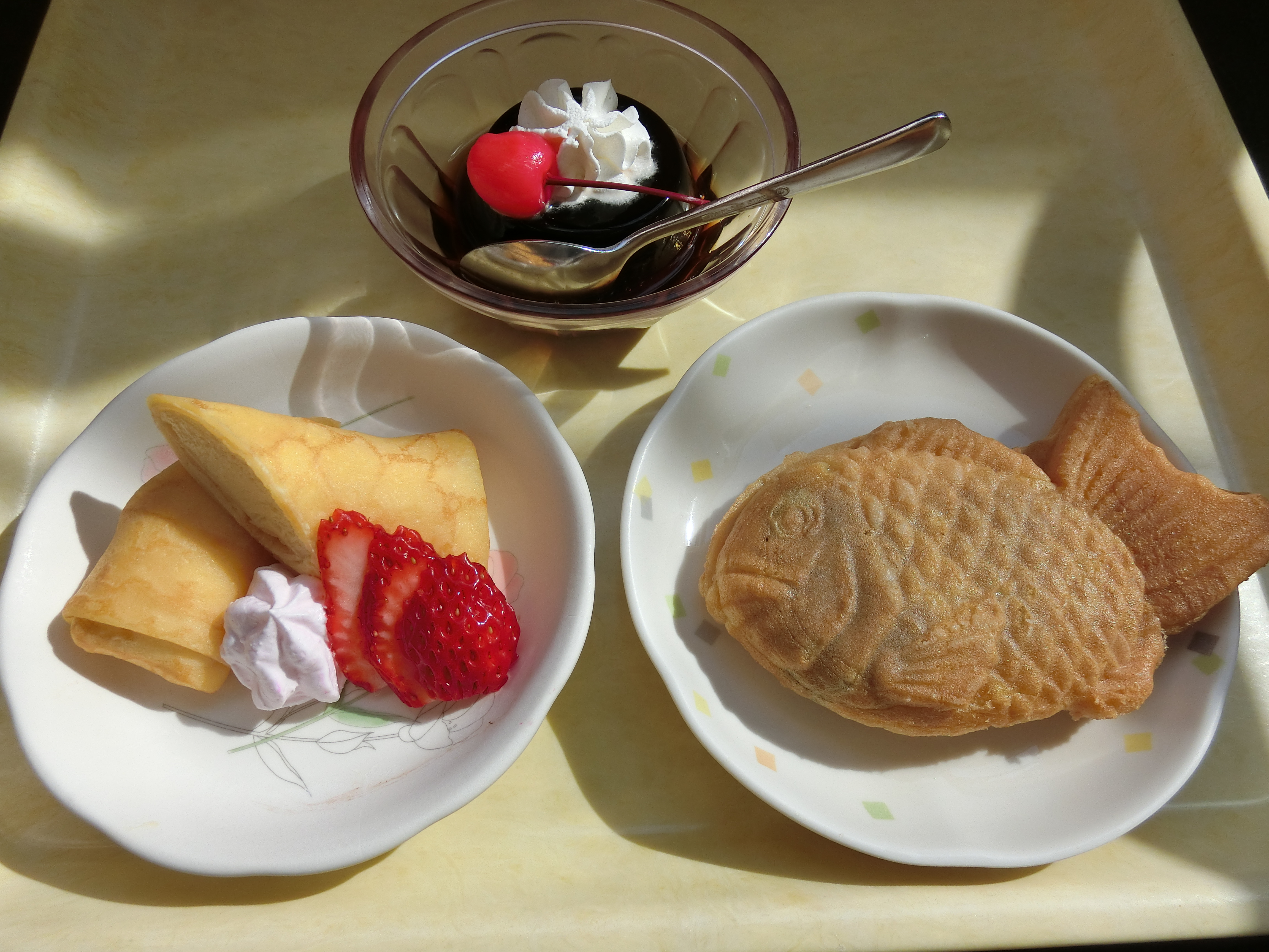 今月の誕生者は3名いらっしゃいました。今月の喫茶メニューはコーヒーゼリー・クレープ・タイ焼きでした。タイ焼きが人気でした。