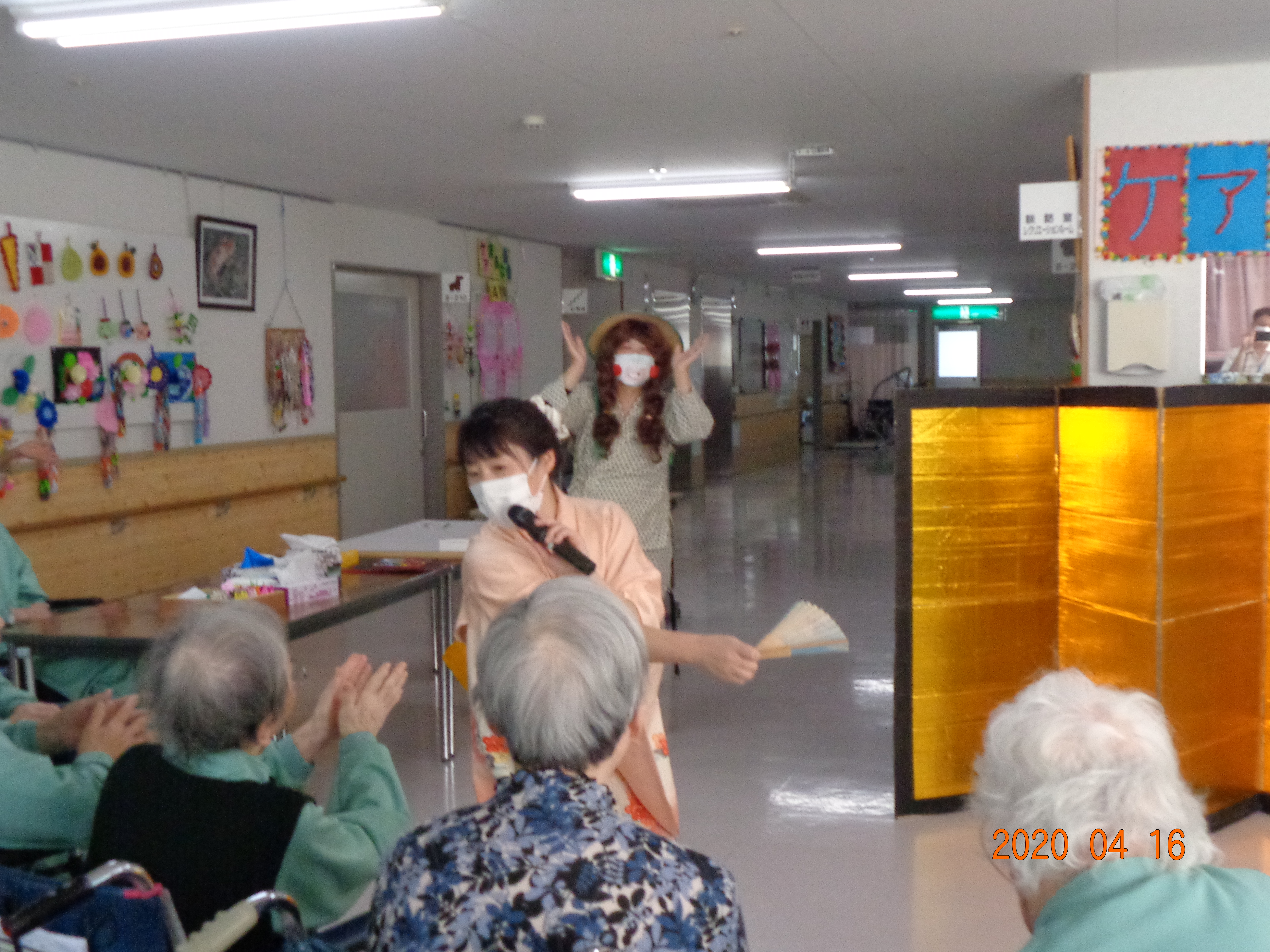 入所利用さんの喫茶、誕生日会をしました。今月は職員の余興で盛り上がりました。