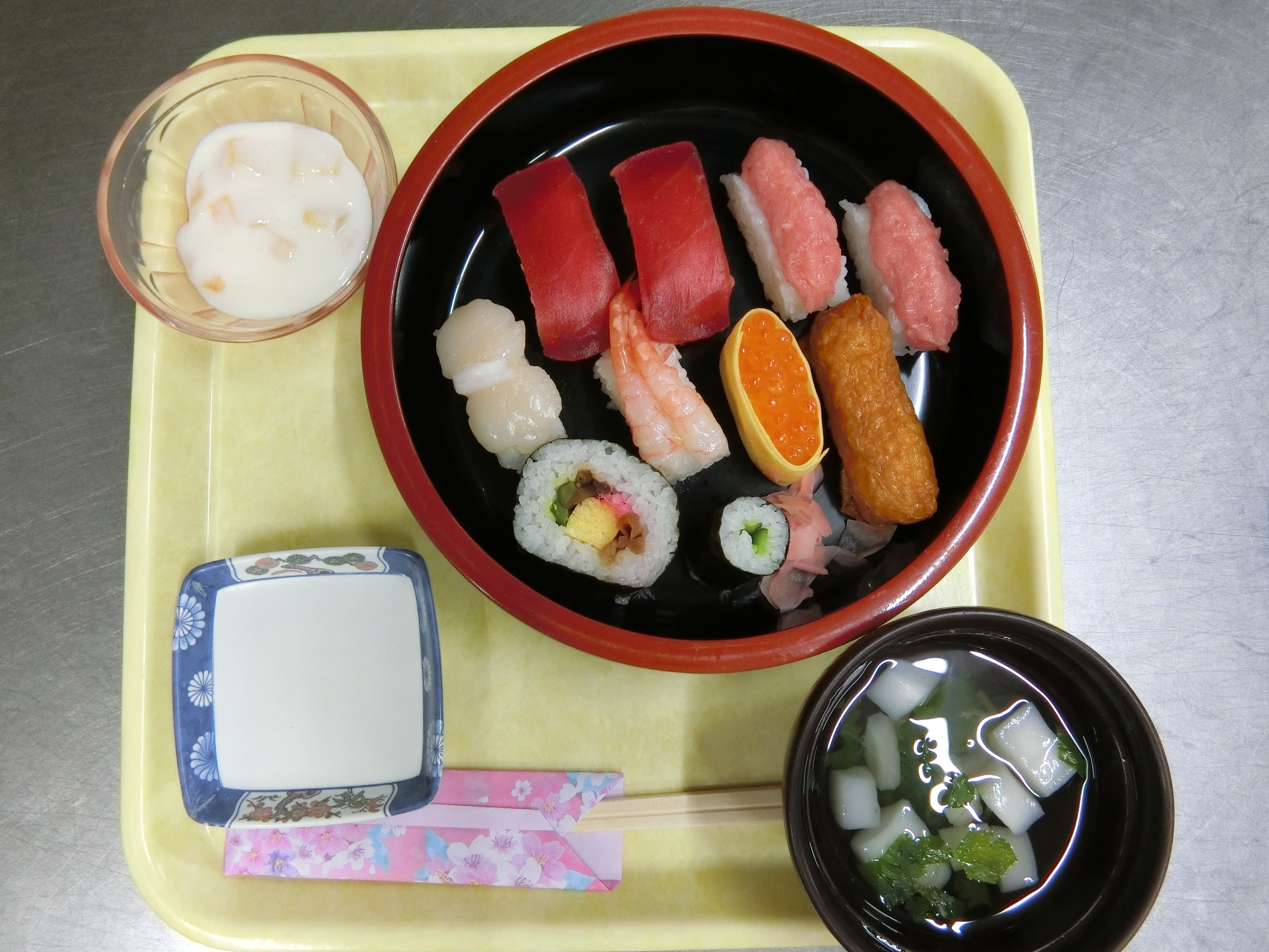デイケアと入所で寿司ランチをしました。粥玉寿司も出て好評でした。
