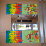 エレベーターの飾りも変わりました。かごの中は利用者さんが制作しました。