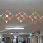 エレベーター前の飾りは作業療法士が綺麗な菊を作りました。