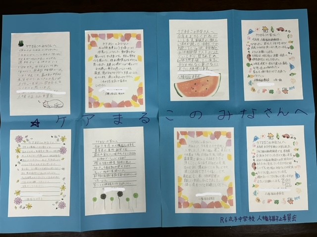 フロアーに貼りだして利用者さんが嬉しそうに読んでいる姿に、職員もほっこりしています♡丸子中学校福祉委員会の皆さん